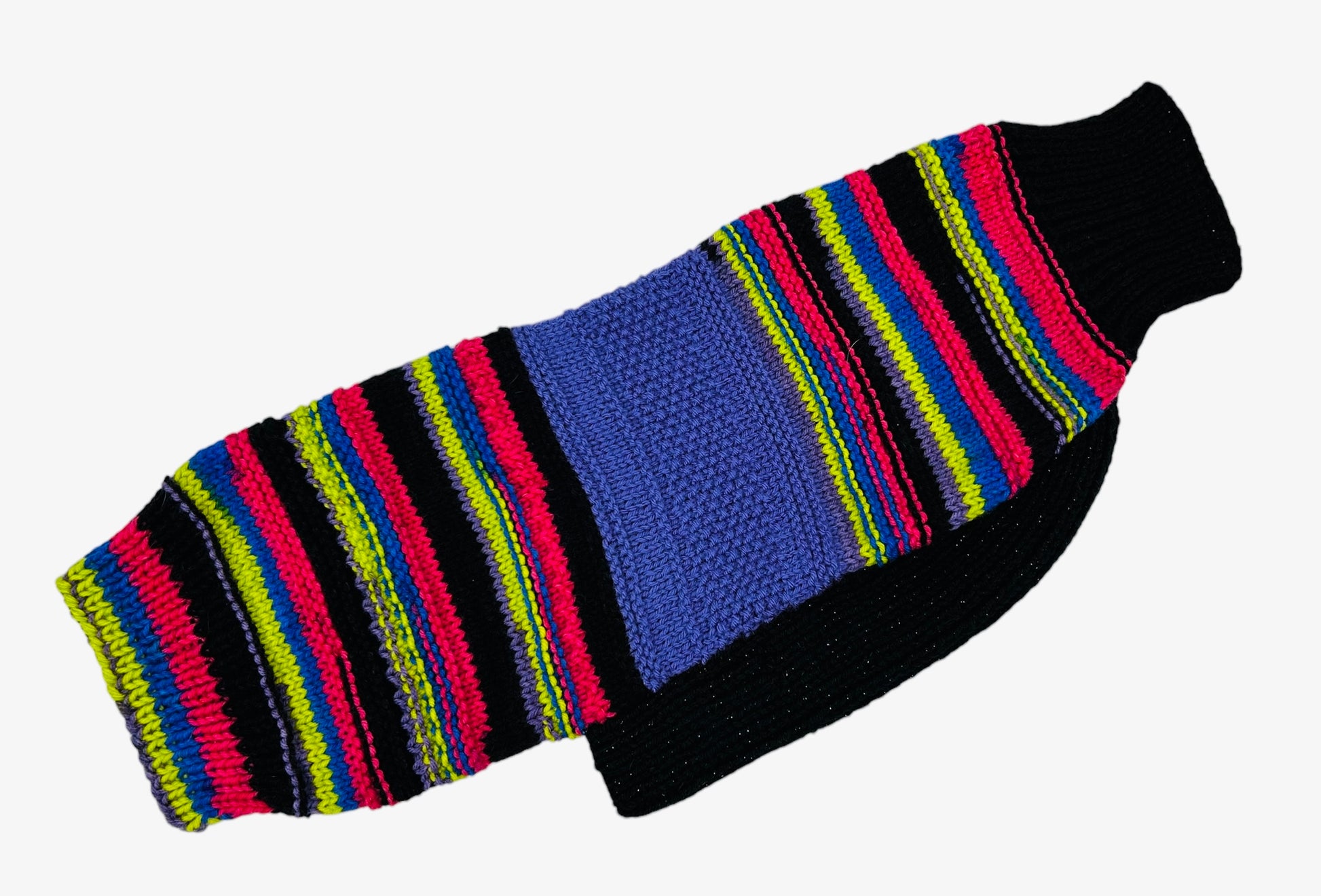 Black Sparkle, Hot Pink, Lime, Purple Stripes Whippet Sweater Size Medium