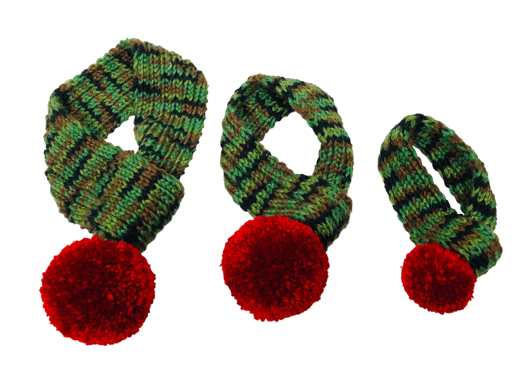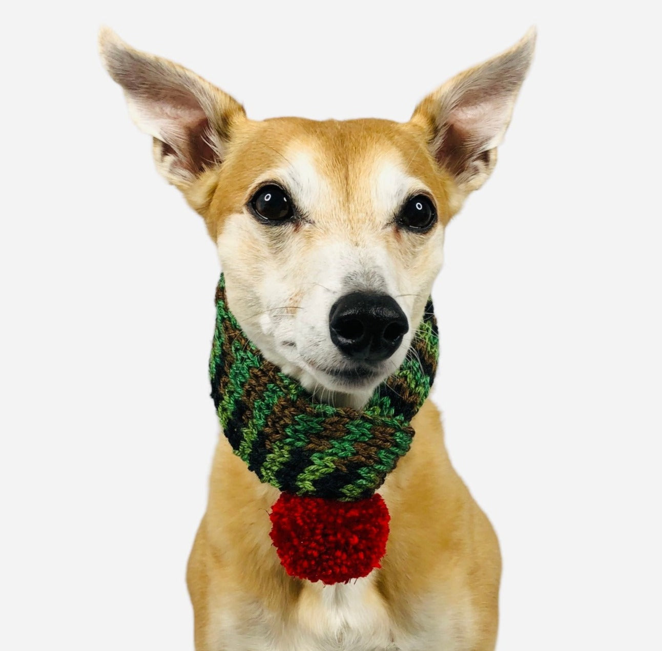 Holiday pompom scarves come in sizes for humans and most dog breeds. Do you want to have epic holiday photos this year? If so, get your matchy matchy going with these fun scarves.