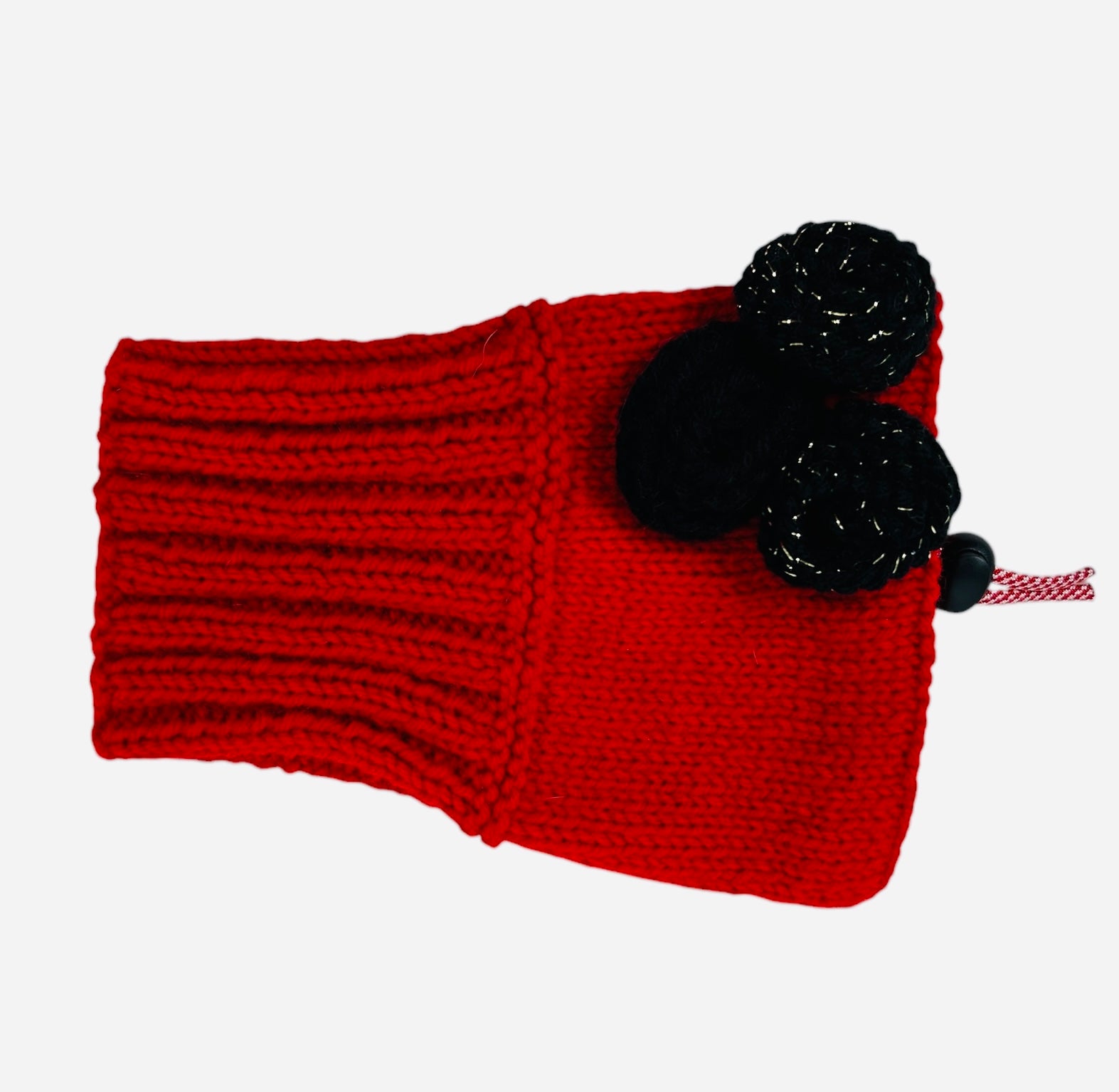 Rose snoods are super sweet and girly. Hand-knitted dog snood to keep your hound's ears warm when the weather turns cold. Features a drawstring closure to keep the snood securely in place.