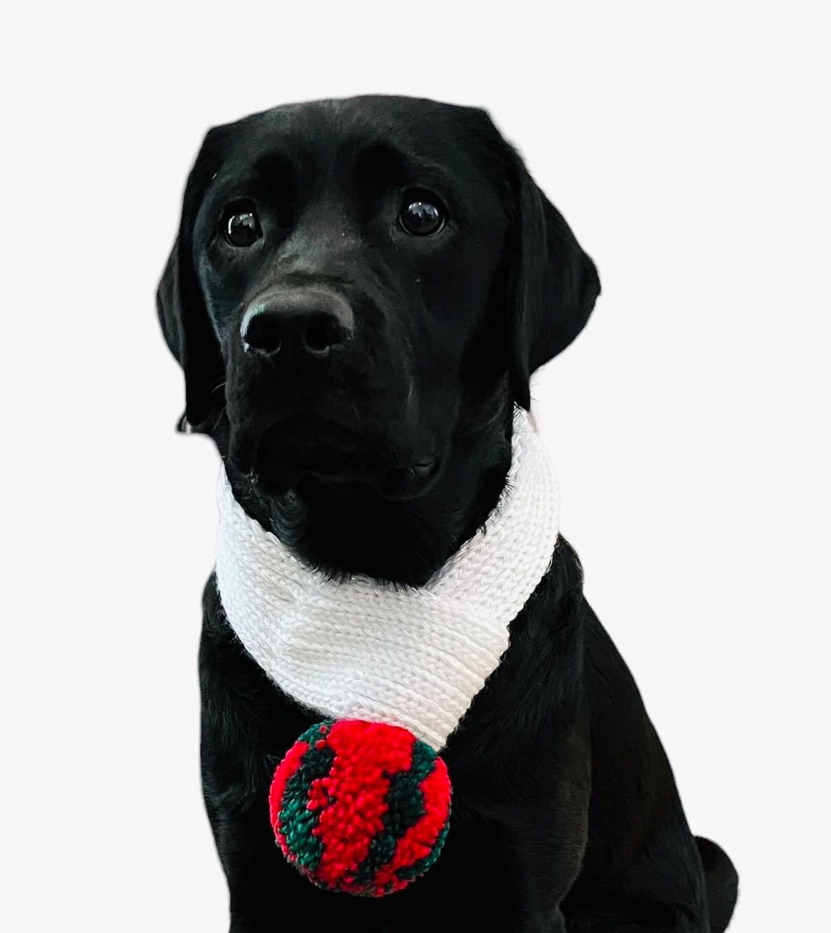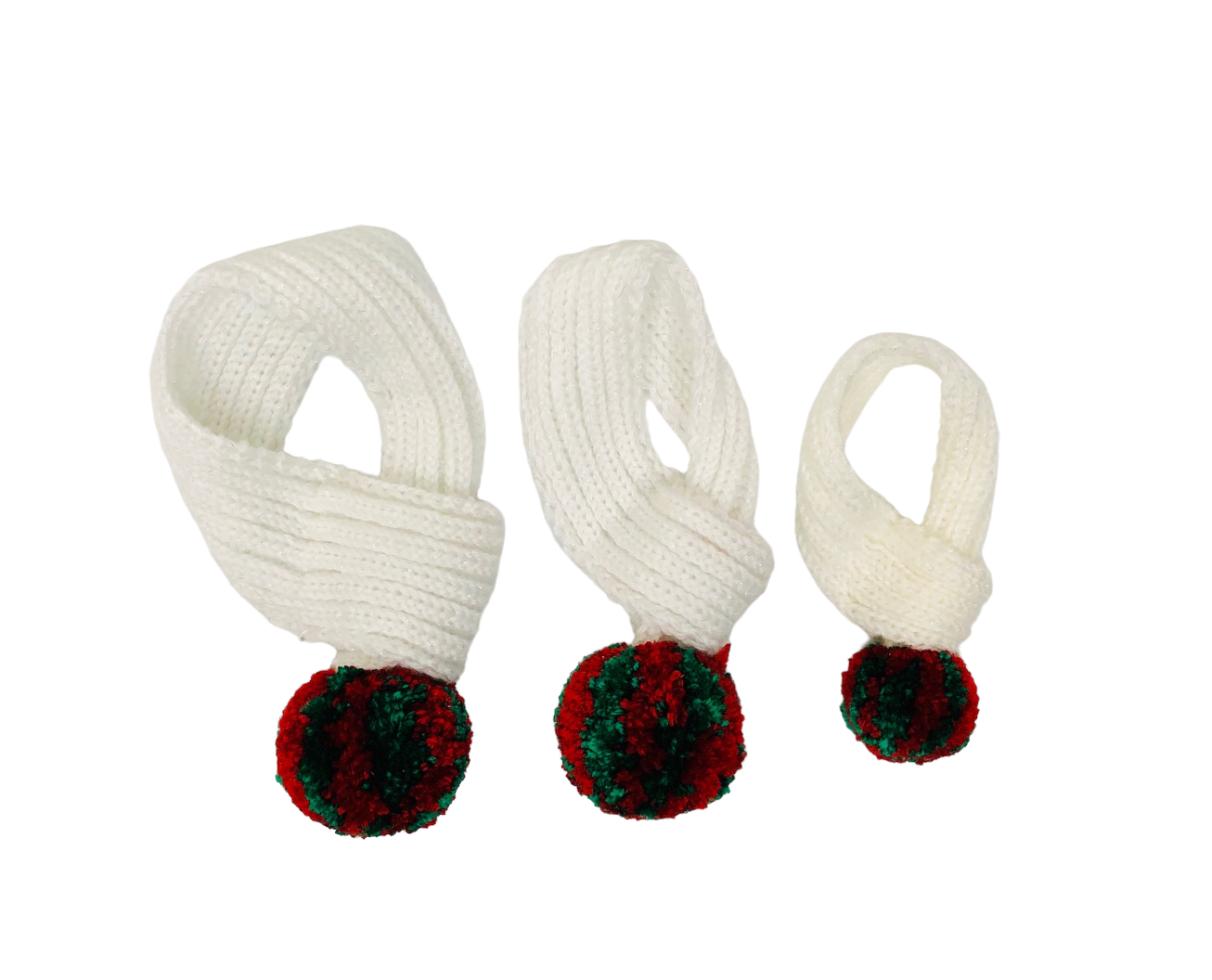 Sparkly holiday pompom scarves come in sizes for humans and most dog breeds. Do you want to have epic holiday photos this year? If so, get your matchy matchy going with these fun scarves.